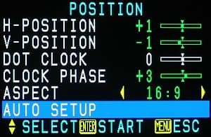 К сожалению при переключении на VGA-вход эта функция не активируется, и, чтобы получить идеальное изображение, приходится лезть в меню и включать ее или изменять настройки вручную. По умолчанию проектор автоматически выбирает между телевизионными стандартами NTSC 3.58, NTSC 4.43, PAL, PAL-60 и SECAM (установка TV SYSTEM имеет значение AUTO1), но есть возможность подсказать ему, что надо выбирать только из NTSC 3.58, PAL-M и PAL-N (AUTO2), или выбрать необходимый стандарт из списка.