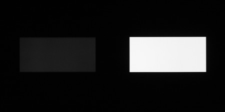 Аппаратные измерения показали, что контрастность высокая, равномерность белого поля хорошая, а равномерность черного, и как следствие контрастности приемлемая. На черном поле можно заметить вариацию засветки по площади экрана: