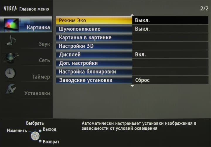 Русская версия графического интерфейса отличается хорошим качеством перевода, как и прилагаемое руководство пользователя (одно на модели TX-PR50VT50, TX-PR55VT50 и TX-PR65VT50), которое при необходимости можно скачать с русского сайта компании-производителя. Вообще, развернутое описание многочисленных настроек и функций телевизора вряд ли будет уместным в данном обзоре, особенно учитывая качество и полноту руководства пользователя.
