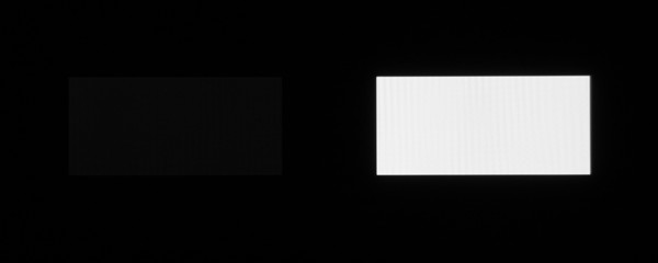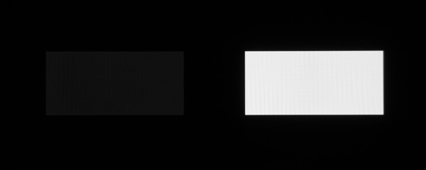 Равномерность яркости белого поля очень хорошая. Яркость черного поля настолько низкая, что достоверно определить ее не получилось. Субъективно черное поле во весь экран в режиме Динамический выглядит абсолютно черным. В режиме Кинотеатр в полной темноте видно, что черное поле не является абсолютно черным. Для характеристики достигаемого контраста в пределах кадра мы попытались измерить контраст при выводе шахматного поля, что-то вроде ANSI, но в применении к телевизору. Однако попытка не удалась, так как яркость черных полей все равно оказалась ниже предела, надежно определяемого использованным датчиком. Если закрыть от глаз белые участки, то на черных участках «шахматного поля» видно, что черный цвет на экране немного ярче настоящего черного цвета, но если смотреть на весь экран, то черные поля визуально воспринимаются как абсолютно черные. В общем, контрастность данного телевизора можно считать достаточной, так как ее дальнейшее увеличение (а оно наверняка возможно) уже не приведет к какому-либо положительному эффекту, заметному невооруженным глазом.