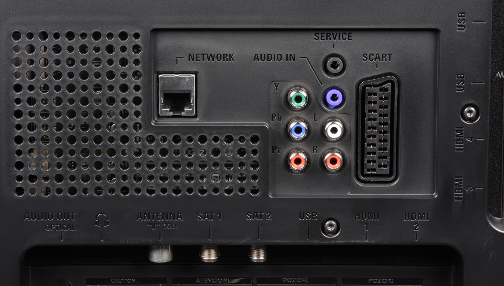 Таблица с характеристиками в начале статьи дает представление о коммуникационных возможностях телевизора. Все разъемы стандартные и полноразмерные. Особенности функционирования входов хорошо описаны в руководстве, дополнительно отметим только то, что именно вход HDMI 1 поддерживает HDCP 2.2, и только при подключении к этому входу мы смогли получить изображение с разрешением 3840 на 2160 пикселей с частотой 60 кадр/с.
