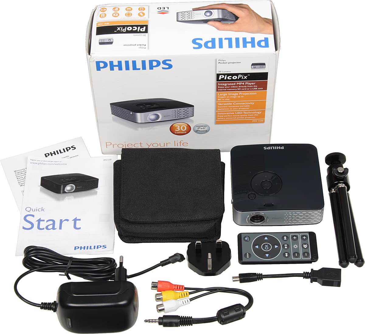 Шапочное знакомство с проекторами Philips серии PicoPix состоялось на выставке IFA в 2010 году. В преддверии IFA 2011 до нашей тестовой лаборатории добрался их представитель, отличающийся наличием встроенного мультимедийного плеера. Особый интерес представляет используемая технология проецирования, так как со светодиодными источниками света у нас побывали LCD- и DLP-проекторы, а вот LED-проекторы с отражающими ЖК-матрицами (LCoS) мы еще не тестировали.