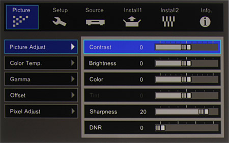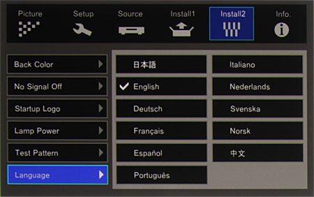 К недостаткам можно отнести то, что текущие значения параметров можно узнать, только выделив нужный в списке на странице. Русской версия меню нет, однако к проектору прилагается достаточно подробное руководство на русском языке.