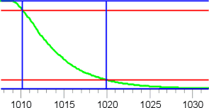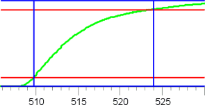 | Фрагмент зависимости яркости от времени (мс), по которой определялось время включения пикселей. | Фрагмент зависимости яркости от времени (мс), по которой определялось время выключения пикселей. |