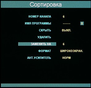 ТВ-станции с относительно высоким уровнем сигнала телевизор показывает хорошо, прием сигналов послабее сопровождается увеличенным видеошумом, но цветность сохраняется. В любом случае телевизор находит все каналы, даже с очень слабым уровнем сигнала. В принципе, среди разнообразных настроек, есть регулировка встроенного антенного усилителя, но пользы от него нет никакой, так как его включение на максимум усиления приводит к появлению шума в случае «сильных» станций и не оказывает никакого влияния на прием «слабых». Список каналов, полученный в результате автоматического сканирования, можно отредактировать вручную, изменяя порядок каналов и их свойства (среди которых есть и режим трансформации изображения).