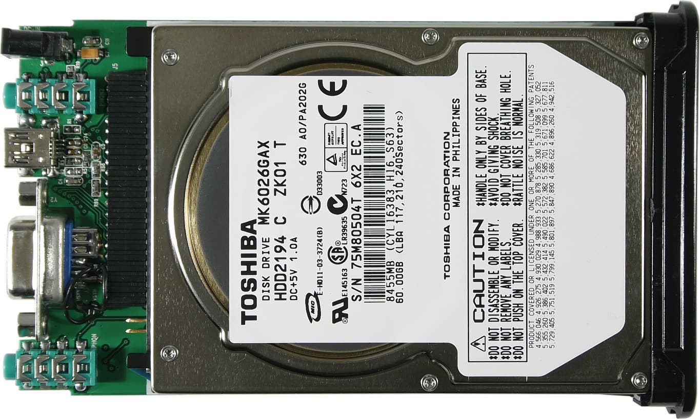 Внутрь корпуса вставляется плата, на которой находится вся электроника и винчестер.
