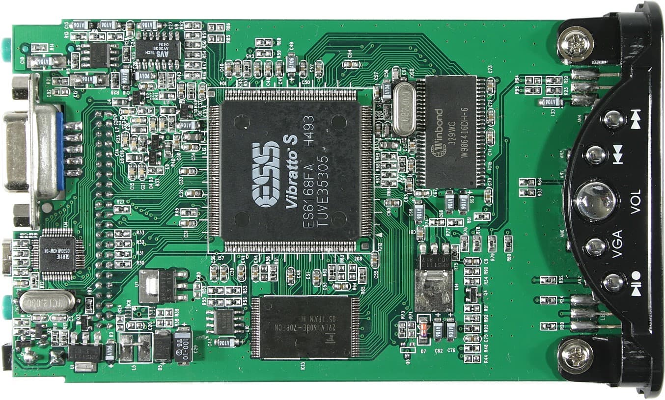 Плеер основан на микросхеме ESS Vibratto S (ES6168FA), про которую мало что удалось узнать. ВидеоЦАПы встроены в этот чип, стереофонический аудиоЦАП внешний — используется микросхема AV2636 (SNR = 102 дБ, THD+N = -90 дБ) от AVS Technology. Усиливает мощность аудиосигнала стереофонический драйвер головных телефонов PT2308L (S/N = 110 дБ, THD = 0,001%) от Princeton Technology Corp. Вероятно, благодаря наличию этой микросхемы, к плееру можно напрямую подключать маломощные наушники, нужно только разобраться с 4-х контактным AV-гнездом миниджек. Функционирование плеера в качестве внешнего USB-накопителя обеспечивает мост USB 2.0 на ATA / ATAPI — микросхема GL811E от Genesys Logic, Inc. В данном экземпляре плеера был установлен 60-ти-гигабайтный винчестер Toshiba MK6026GAX.