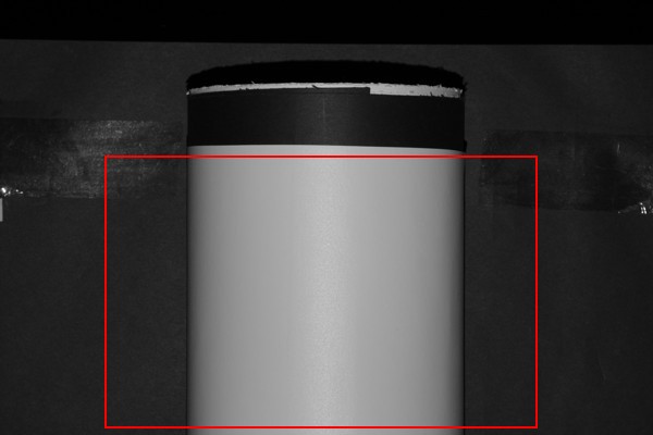 Полученные фотографии подвергались следующей обработке: преобразование из формата RAW в TIFF 48 бит на пиксель, поворот до совмещения оси цилиндра с вертикалью, обрезка ненужных фрагментов (примерно по границе, указанной но фотографии ниже), перевод в шкалу серого 16 бит.