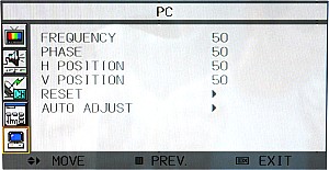 Наличие «компьютерного» VGA-входа позволило нам провести тесты, аналогичные тем, что мы применяем к LCD-мониторам. Сначала о субъективных впечатлениях. В целом все неплохо: цвета яркие, разрешение вплоть до пикселя, равномерность черного и белого полей хорошая, на шкале серого воспроизводятся все оттенки (правда, с небольшим уклоном в синеву). Максимальное разрешение при подключении по VGA-входу составляет 1024 на 768 пикселей, что по горизонтали меньше разрешения матрицы. Поэтому, чтобы комфортно смотреть с компьютера фильмы формата 16:9 нужно включить режим WIDE (кнопка P.SIZE на пульте), тогда изображение растянется на весь экран. Автоподстройка под параметры VGA-сигнала со своей задачей справляется плохо: даже на удобных, контрастных изображениях с рамочкой она не может правильно определить сдвиг по горизонтали, а иногда и фазу, приходится подправлять руками.