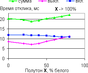 | Времена отклика при переходе от полутона X до белого. | |
