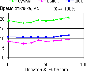 | Времена отклика при переходе от черного до полутона X. | |