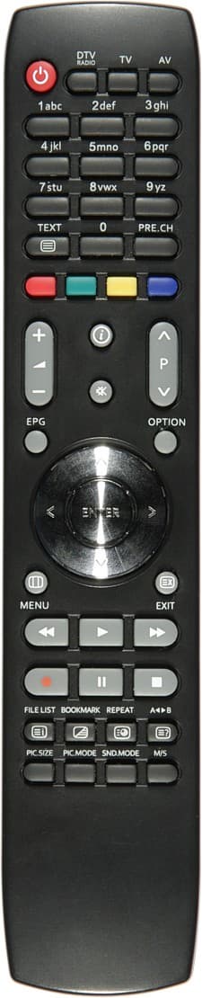 Пульт довольно большой. Кнопок много (к обычным добавлены кнопки, управляющие плеером), надписи к кнопкам контрастные и в большинстве случаев достаточно крупные. Самые важные кнопки легко находятся на ощупь. Питается пульт от двух AAA-батареек.