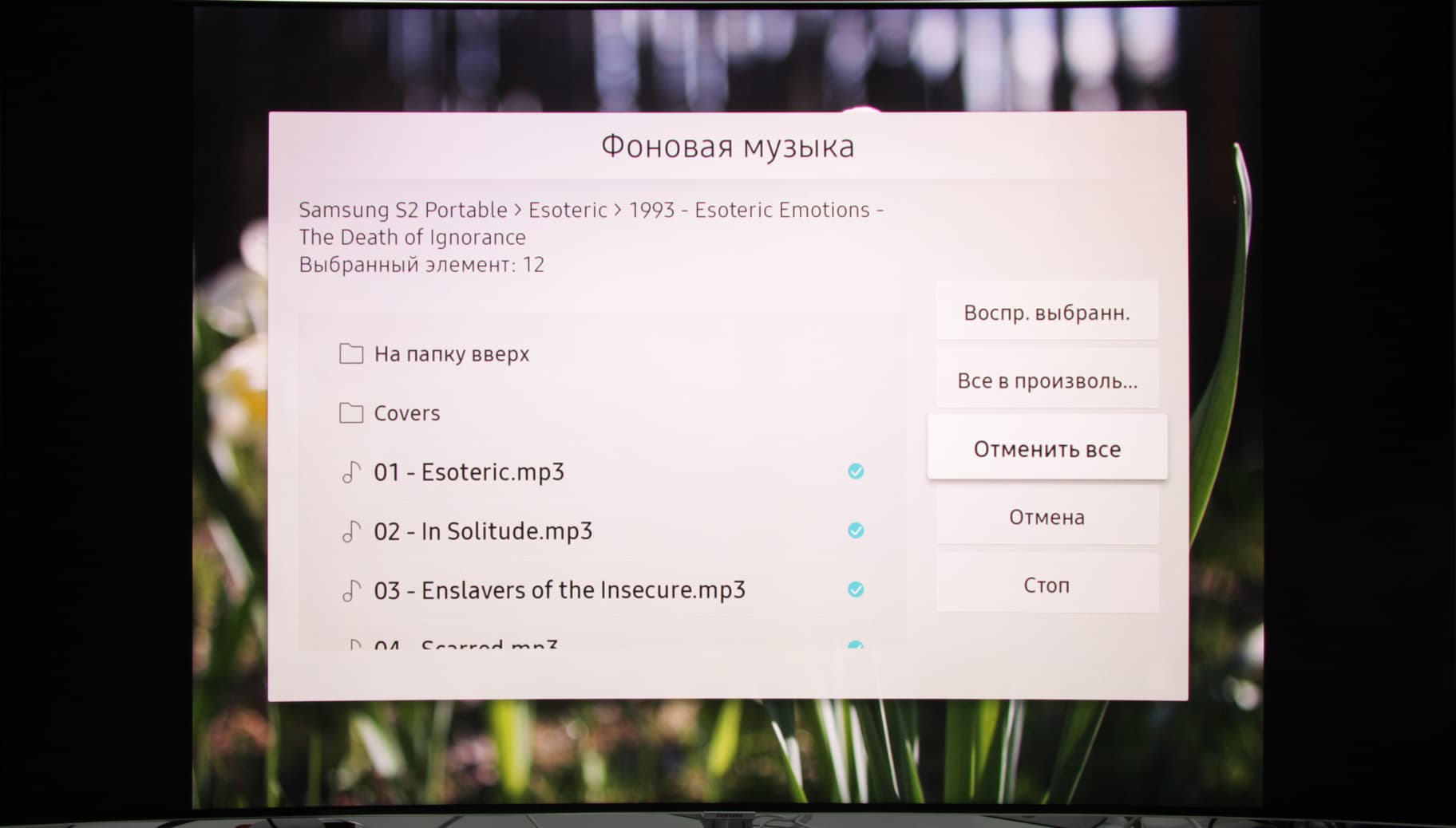 При поверхностном тестировании воспроизведения мультимедийного контента мы ограничились рядом файлов, запускаемых в основном с внешних USB-носителей. Были опробованы жесткие диски, внешние SSD и обычные флешки. Отметим, что телевизор поддерживает USB-накопители как минимум с файловыми системами FAT32, exFAT и NTFS, а с кириллическими названиями файлов и папок не было никаких проблем. Нами подтверждена способность телевизора показывать растровые графические файлы в форматах JPEG, PNG и BMP, в том числе в виде слайд-шоу с эффектами перехода и под выбранную фоновую музыку.