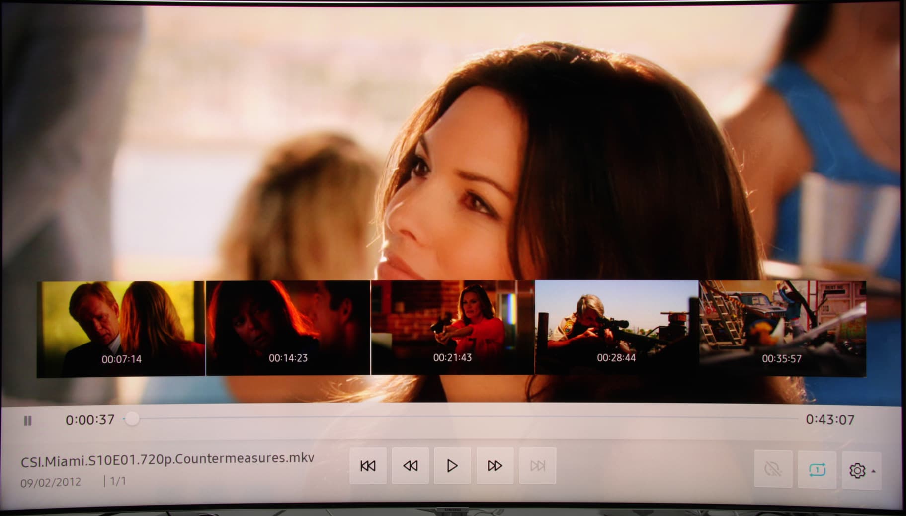 Кинотеатральные режимы работы тестировались при подключении к Blu-ray-плееру Sony BDP-S300. Использовалось HDMI-подключение. Телевизор поддерживает режимы 480i/p, 576i/p, 720p, 1080i и 1080p при 24/50/60 Гц. Цвета правильные, с учетом типа видеосигнала яркостная и цветовая четкость высокая. В стандартном для видео диапазоне (16—235) отображаются все градации оттенков. В случае режима 1080p при 24 кадр/с кадры выводятся с чередованием длительности 2:3.