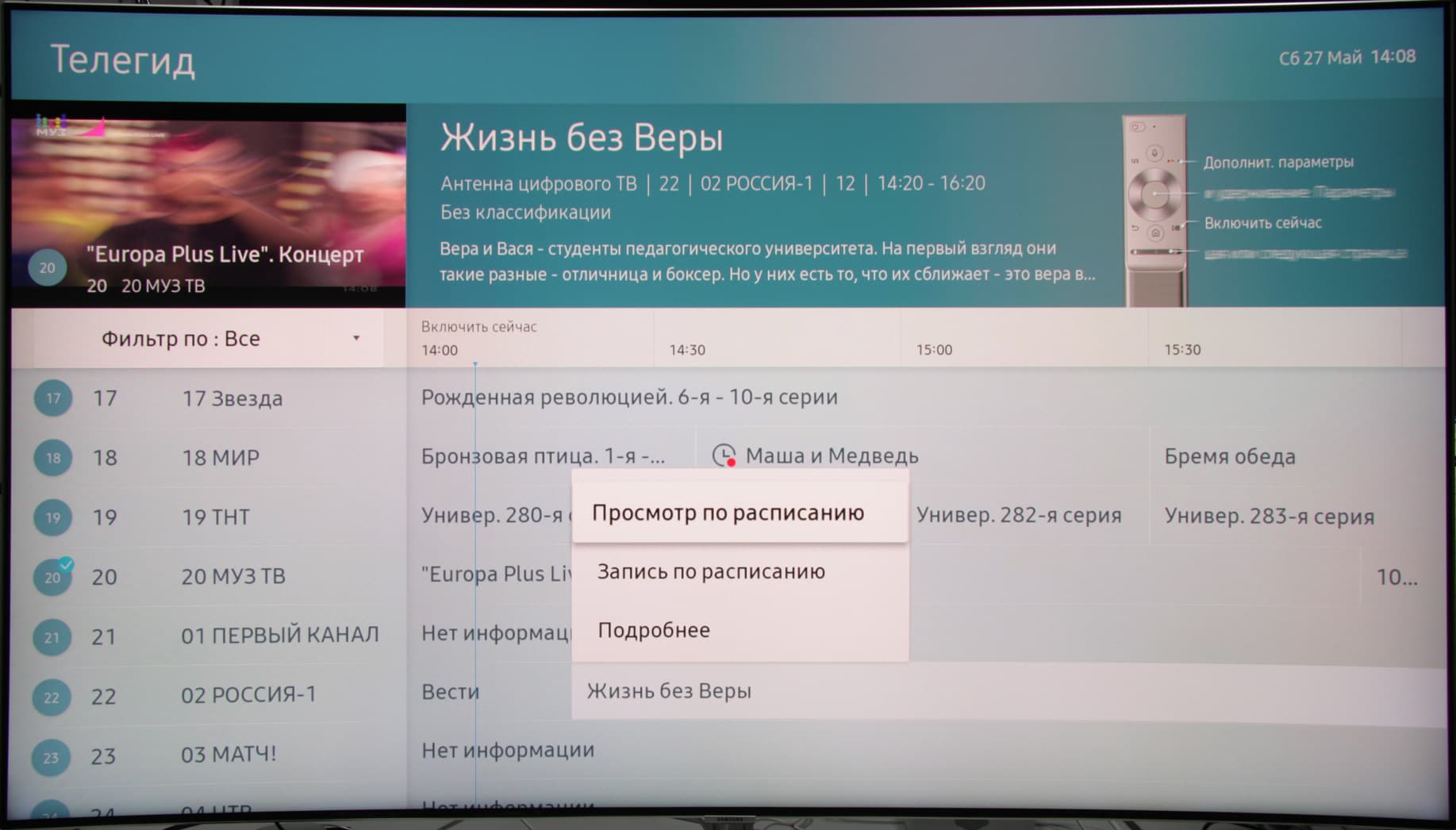 Качество изображения всех каналов было высоким. Есть хорошая поддержка электронной программы передач — можно посмотреть, что именно идет на текущем и других каналах, запрограммировать просмотр или запись программы или сериала и т. д.