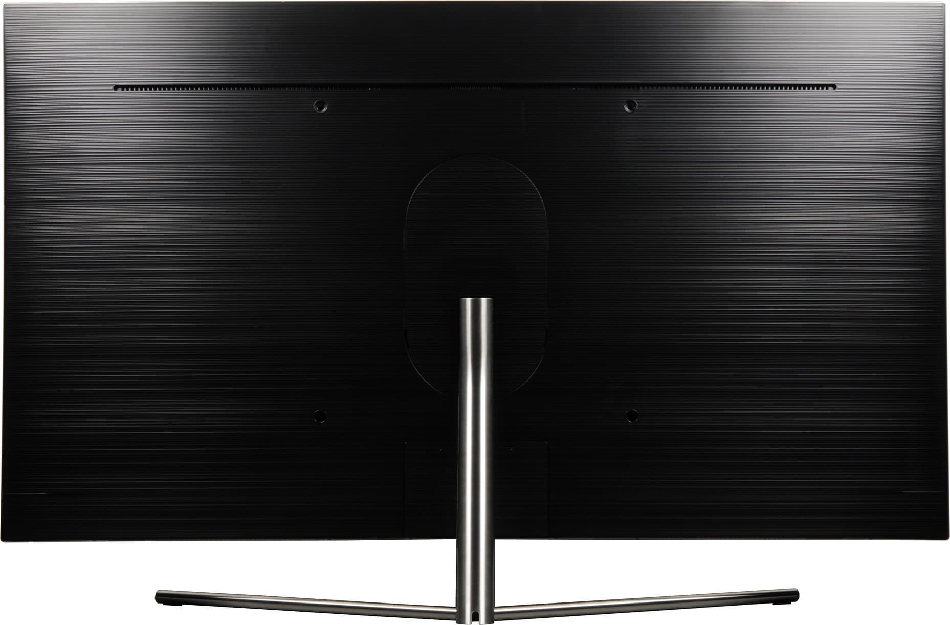 Жесткость конструкции подставки высокая, телевизор стоит устойчиво и чуть-чуть наклонен вперед. Альтернативный способ установки телевизора — это вариант крепления телевизора на VESA-кронштейне под имеющиеся на задней панели резьбовые отверстия. Например, можно использовать фирменный кронштейн, обеспечивающий крепление на стене «практически без зазора». Из-за изгиба экрана придется использовать входящие в комплект поставки-адаптеры для крепления на стену. Кожух задней панели изготовлен из черного пластика с матовой поверхностью и с выраженным продольным рельефом.