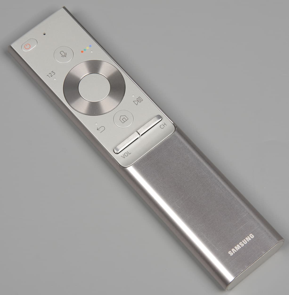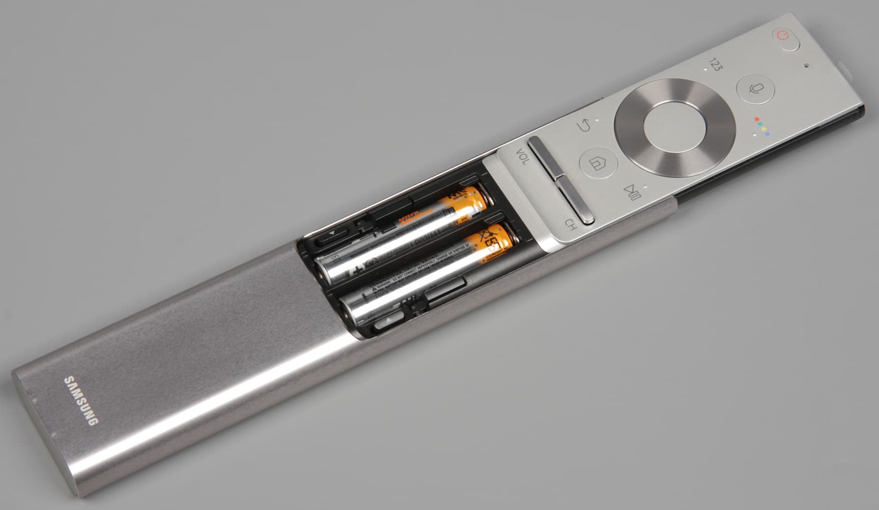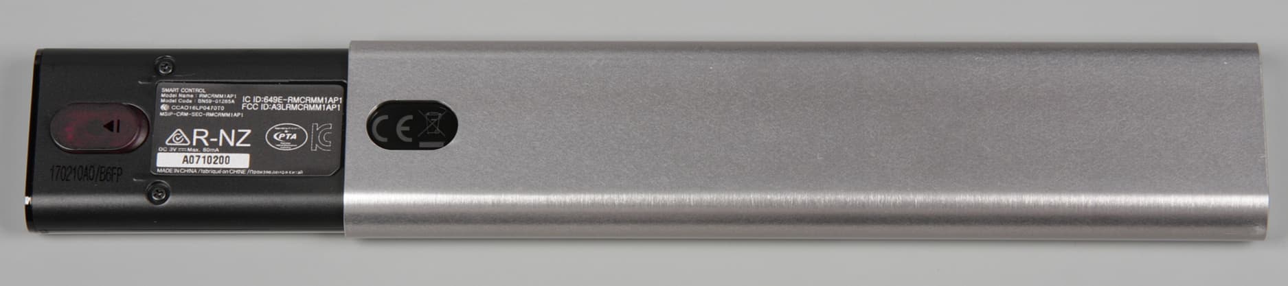 Пульт имеет оригинальную конструкцию. Нажав на кнопочку снизу, можно сдвинуть назад алюминиевый кожух.