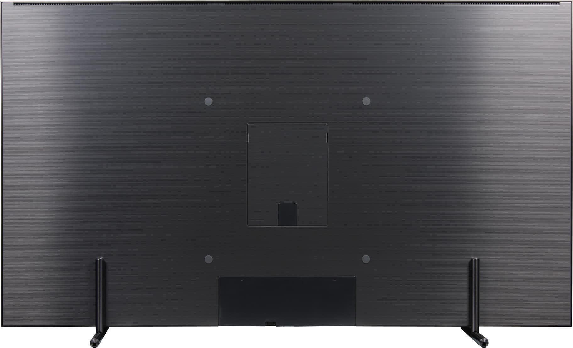Альтернативный способ установки телевизора без использования штатных ножек — это вариант крепления телевизора на VESA-кронштейне под имеющиеся на задней панели резьбовые отверстия. Щиток в центральной части задней панели скрывает еще несколько резьбовых отверстий, которые, по всей видимости, позволяют закрепить телевизор на фирменном настенном кронштейне.