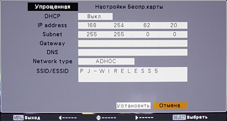С компьютера на проектор изображение можно передавать по проводной или беспроводной сети. В случае беспроводного соединения поддерживаются различные методы аутентификации, а данные могут передаваться в зашифрованном виде. Проводное соединение устанавливается обычным способом — приведением сетевых настроек проектора в соответствие с параметрами сети, к которой он подключен.