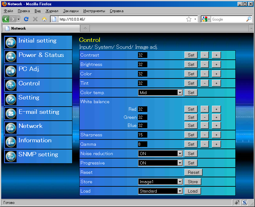 так и с помощью любого WEB-браузера, обратившись к встроенному в проектор HTTP-серверу.