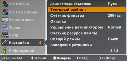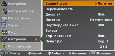 Есть функция автоматического выключения лампы после 5-минутного отсутствия сигнала. Запрос на подтверждение выключения проектора отключается. Можно захватить текущее изображение и использовать его в качестве заставки.