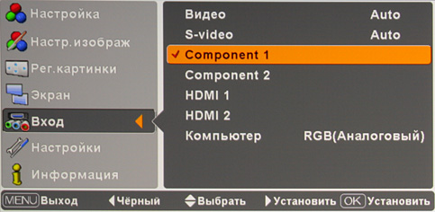 Видеовход с разъемом mini D-sub 15 pin совместим не только с компьютерными VGA-сигналами, но и со SCART-RGB (потребуется опциональный кабель-переходник со SCART на mini D-sub 15 pin, а в меню вход Компьютер нужно будет переключить в режим RGB(Scart)). HDMI-входов два, оба — версии 1.3b. Вариант яркостного диапазона выбирается в меню отдельно для каждого HDMI-входа. Автопоиска активного подключения нет. Нужный видеовход (и режим его работы) выбирается в меню,