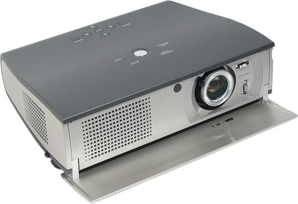 Оригинальная конструкция, когда пылезащитная крышка не просто надевается на объектив, а закрывает всю переднюю плоскость имеет как преимущества, так и недостатки. Во-первых, закрывать (и открывать) такую крышку удобнее и быстрее, чем надевать (снимать) крышку на объектив, особенно когда проектор подвешен к потолку. Во-вторых, крышка представляет собой единую конструкцию со всем проектором, а не болтается на веревочке. Отрицательными сторонами является чуть меньшая защита объектива от пыли, а также то, что крышка закрывает и вентиляционное отверстие для забора воздуха, а, следовательно, закрывать ее надо только после того, как проектор остынет и перестанет вращать вентиляторами. На всякий случай предусмотрено, что проектор не включается при закрытой крышке и сразу выключается, как только ее закрыть.