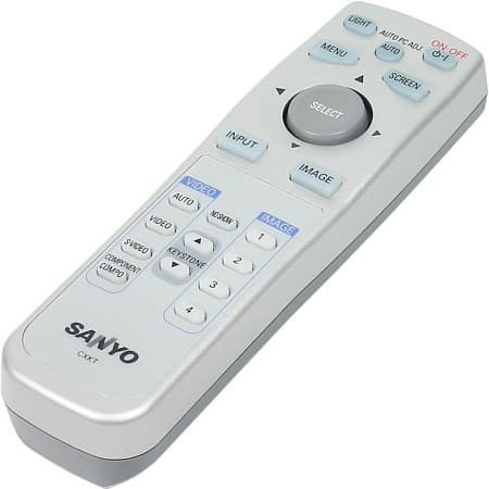 У пульта два излучающих ИК-светодиода, но на корпусе проектора ИК-приемник только спереди, поэтому сигналу от пульта чаще всего придется отражаться от экрана. Устойчивая связь наблюдалась, когда от пульта до экрана и от экрана до проектора в сумме было меньше 7 м.