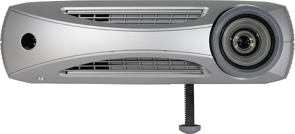 Это воплощение оригинального дизайнерского замысла имеет и чисто функциональное значение. Во-первых, за получившуюся ручку проектор очень удобно переносить, и, во-вторых, выступая вперед, эта скоба дополнительно защищает объектив, принимая на себя фронтальные удары. Странно, что такой дизайн достался кинотеатральному проектору, не склонному к частой перемене мест. Задняя панель все ставит на свои места.