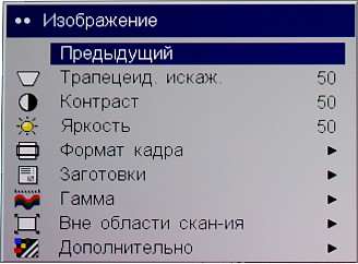 Режимы Overscan выставляются в меню или кнопкой overscan на пульте. Проекция изображения на экран временно выключается кнопкой blank на пульте.