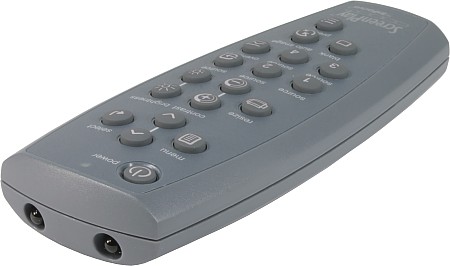 Между ними под прозрачной крышечкой располагается ИК-приемник. Такой же есть и на левом боку, а спереди и сзади — еще по одному, но уже прикрытых традиционными затемненными окошками. Получается, что проектор ни за что не пропустит команду с пульта ДУ, так как внимательно следит за ним. (А еще можно подключить выносной ИК-приемник!) Сверху на корпусе находятся 13 кнопок и один индикаторный светодиод.