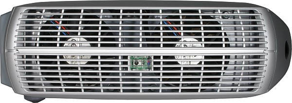 Вентиляционные решетки имеются по бокам и спереди, за дугой-ручкой. На правом боку за решеткой просматриваются два больших вентилятора системы охлаждения.