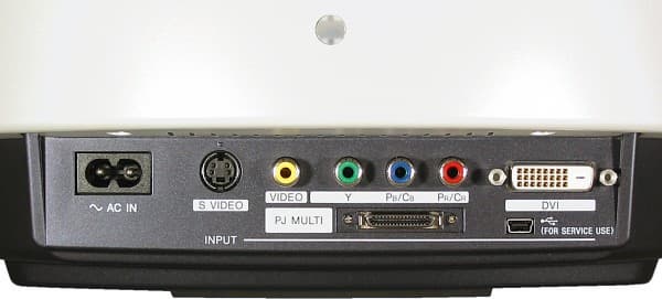 SONY, конечно же не удержалась, и придумала разъем PJ multi. Не беда, что нестандартный, достать соответствующие кабели трудно, а сам разъем не выглядит достаточно надежным. Главное — он свой, фирменный. Странно, почему это другие производители, когда им нужно совместить в одном разъеме несколько функций используют стандартные многоштырьковые, например VGA или DVI? Ведь любой купив стандартные разъемы и кусок кабеля запросто сделает себе необходимый переходник, а не понесет денежки фирме-производителю проектора. Хорошо хоть у проектора от SONY есть три самых обычных видеовхода и цифровой DVI. Но, чтобы подключить компьютер без цифрового DVI, придется достать переходник PJ multi-VGA.