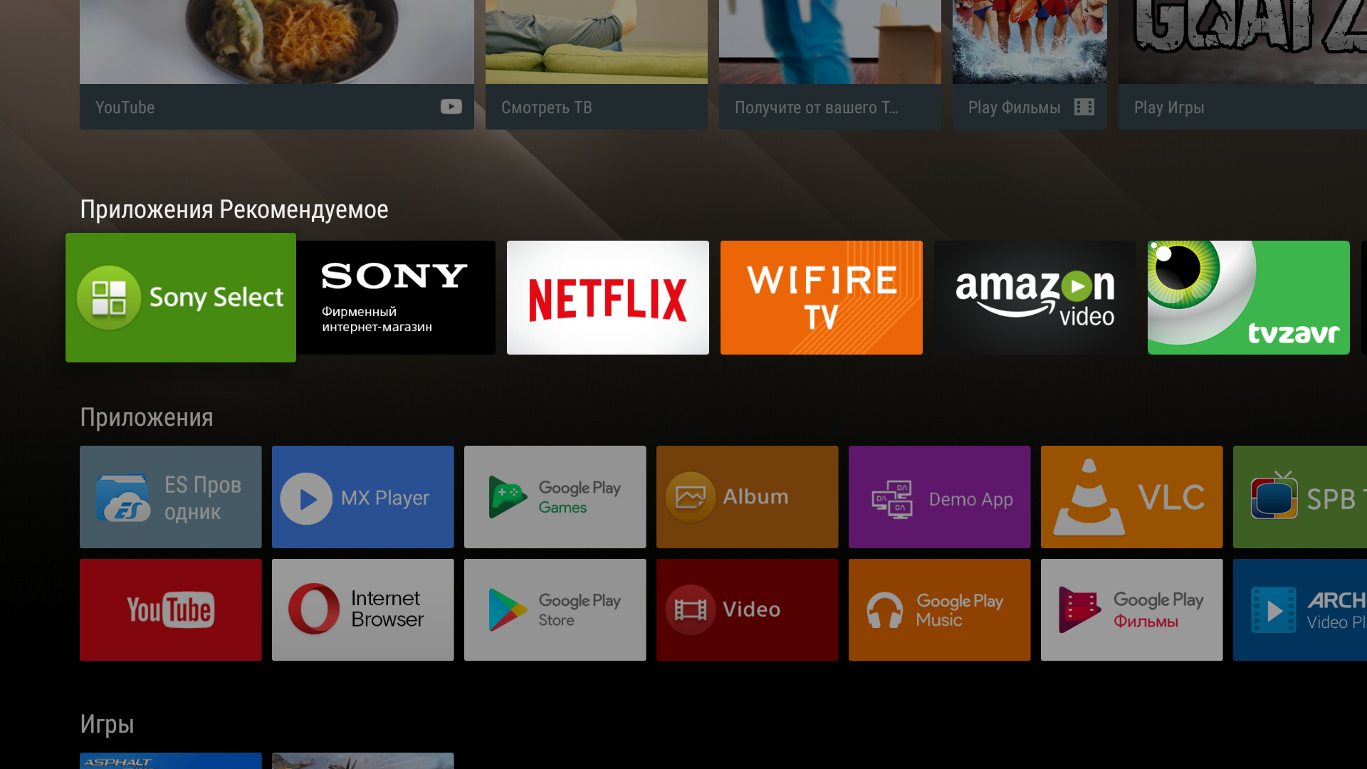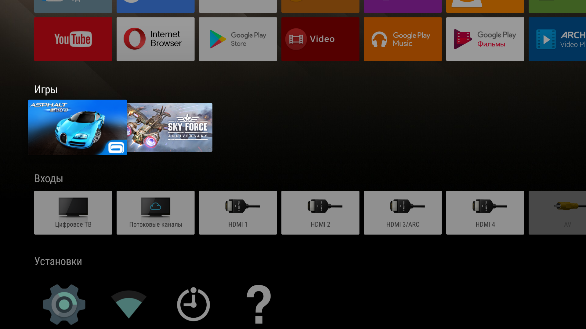 Сразу заметим, что в большинстве случаев для оперативной настройки ТВ, изображения в частности, удобнее использовать контекстное меню, вызываемое кнопкой Action Menu на пульте ДУ. Формально для Android TV выбор приложений в магазине Google Play очень ограничен, например, есть веб-браузер Opera, но нет Chrome. Однако в большинстве случаев можно установить программы из файлов apk, и ими можно будет нормально пользоваться.