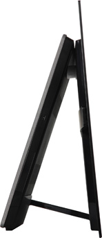 Эффективный антибликовый фильтр (заметим, что свет от экрана имеет линейную поляризацию) снижает яркость отраженных объектов до такой степени, что зеркальность экрана в большинстве случаев просмотру не мешает. Но отражение ярких источников света в экране видно, а на больших по площади черных полях видна и светлая одежда зрителя, если телевизор смотрят в ярко освещенном помещении. По внешнему периметру экран обрамлен узкой рамкой из алюминиевого сплава. Внешняя матовая поверхность рамки анодирована и покрашена в черный цвет. Спереди по низу экрана идет узкая накладка из пластика. За ней в центре находится многоцветный неяркий индикатор состояния, там же — ИК-приемник пульта ДУ и датчик освещенности. Индикатор обычно ровно горит белым при работе телевизора и подмигивает, при приеме команд с пульта ДУ, но, как написано в руководстве, может изменять цвет на голубой, розовый или янтарный в зависимости текущего состояния телевизора. Режим работы индикатора выбирается в меню, и его можно отключить совсем. К той части корпуса, что откидывается назад, снизу прикручивается утяжелитель весом в несколько килограммов, это придает телевизору дополнительную устойчивость. Исключить опрокидывание поможет фиксирующий ремень, для крепления которого есть резьбовые отверстия. Чтобы телевизор не скользил и не царапал поверхность, на которой он установлен, на нижнем торце блока экрана ближе к краям и снизу на откидывающейся части корпуса есть резиновые накладки. Откинутая назад часть фиксируется защелкой рядом с шарниром и нижней распоркой, изготовленной из металла, хромированной и зеркально-гладкой снаружи.