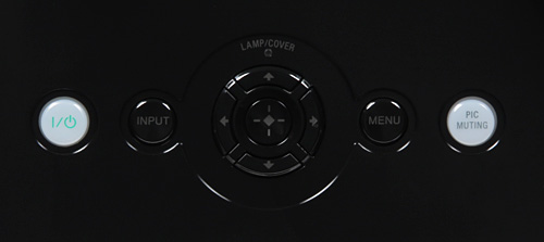 Корпус проектора изготовлен из черного пластика. Внешняя поверхность корпуса сверху и с боков с зеркально-гладкая, не очень устойчивая к появлению царапин, а спереди, сзади и снизу — матово-черная. Следы от пальцев и пыль на корпусе заметны, и, кажется, он эту пыль слегка притягивает. На верхней панели находятся рельефный логотип, кнопки управления и аварийный индикатор.
