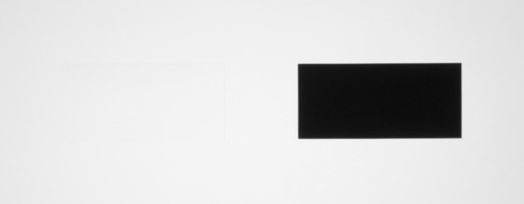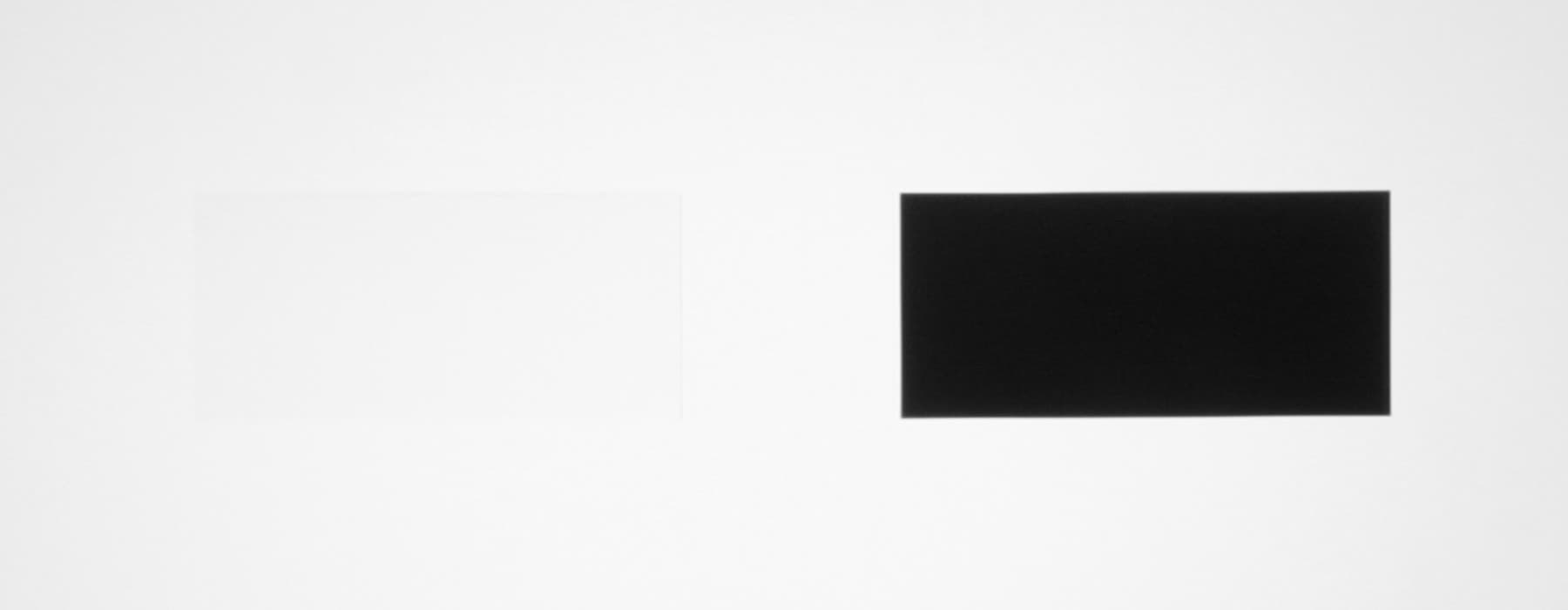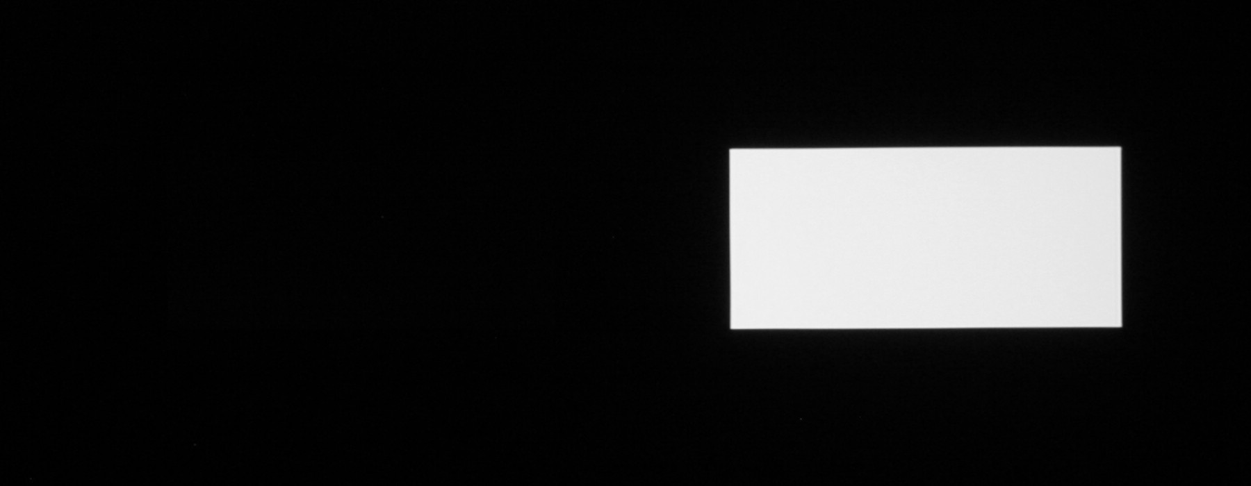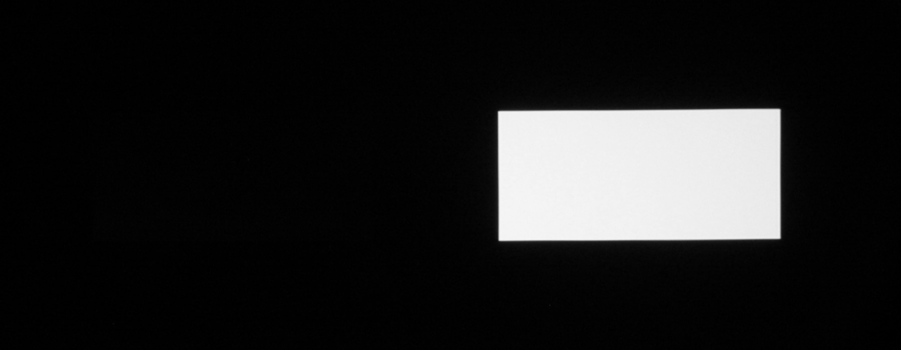 Для тестирования эффективности разделения для глаз мы вывели три тестовых изображения с черным прямоугольником на белом фоне, с белым прямоугольником на черном фоне и со светло серым прямоугольником на темно-сером фоне. В стереопарах прямоугольники были смещены относительно друг друга, поэтому при просмотре через очки при 100%-ном разделении можно было бы видеть только один прямоугольник. Фотографии ниже сделаны через очки при сигнале 60 кадр/с, при этом экспозиция подбиралась так, чтобы белое поле на фотографиях было максимально ярким, но еще не пересвеченным. Яркость 3D-очков установлена на максимальное, среднее и на минимальное значение: