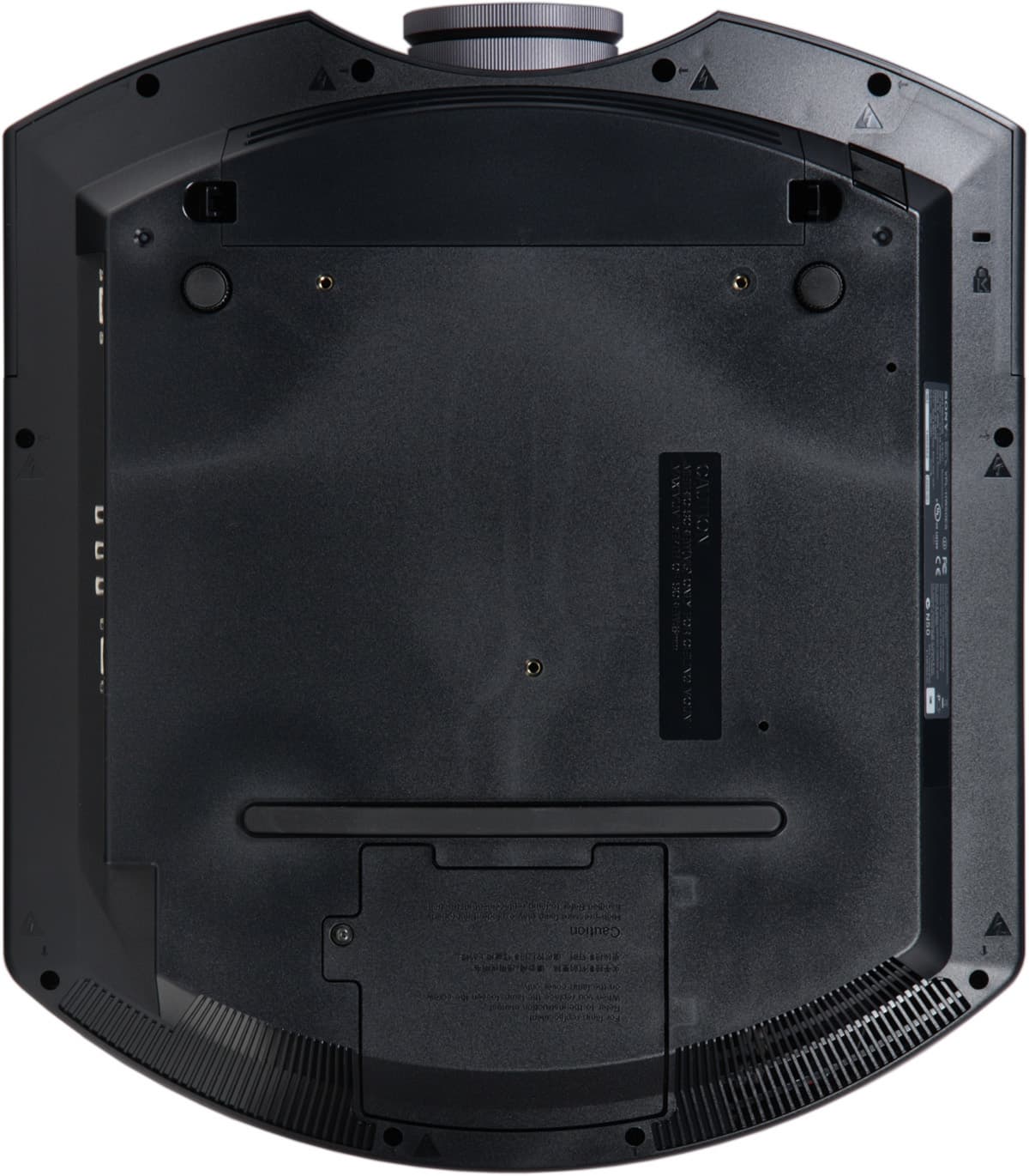Крышки отсека лампы и воздушного фильтра находятся на днище, но они не заходят за треугольник крепежных отверстий, поэтому возможно существуют потолочные кронштейны, конструкция которых позволяет менять лампу и вынимать фильтр для чистки/замены без демонтажа проектора с кронштейна. Воздух для охлаждения внутренностей забирается через многочисленные решетки и выдувается через две симметричные решетки в передней части корпуса (в основном через правую).