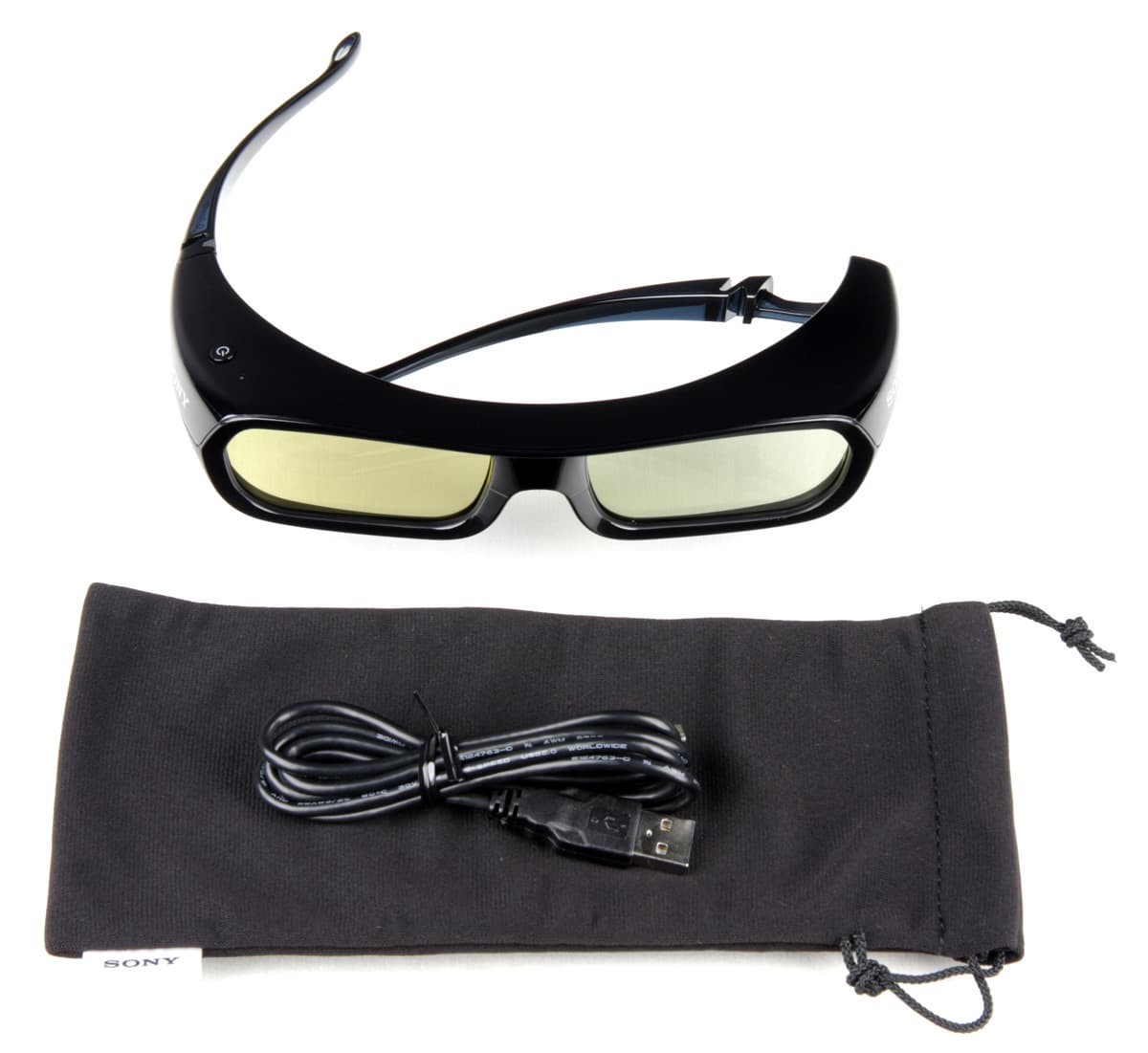 Очки имеют элегантный дизайн, их комфортно носить даже с корректирующими очками, угол обзора в них достаточно большой, очки охватывают голову гибкими дужками и подходят для небольших и больших голов. Правда, по современным мерками очки немного тяжеловаты — 59 г. К очкам прилагается мягкий двухслойный чехол, предназначенный для хранения очков. Работают очки от встроенного аккумулятора. На полную зарядку нужно 30 мин, а от одной зарядки очки работают 30 часов. 3 минуты подзарядки обеспечивают 3 часа работы (данные производителя). Для зарядки используется кабель (1,2 м) с разъемами Micro-USB и USB типа A. Первый разъем подключается к разъему на очках под заглушкой, второй — к БП или порту на компьютере. При работе очки не заряжаются. Синхронизируются очки по ИК-сигналу от проектора. Приемник расположен по центру между стеклами. Включаются очки кнопочкой сверху. Выключаются — через несколько минут отсутствия приема синхросигнала.