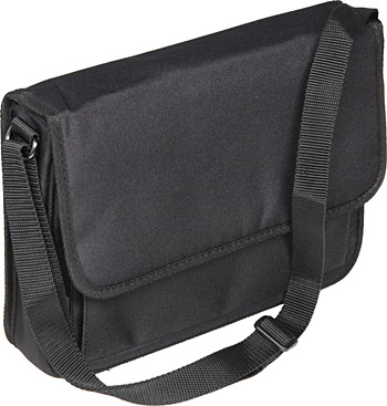 Передняя ножка проектора оснащена электромеханическим приводом. При включении проектора ножка выдвигается на высоту, которая была установлена на момент выключения проектора. При переходе в ждущий режим ножка втягивается. Режим регулировки высоты ножки включается в меню или кнопками TILT/KEYSTONE на контрольной панели и на пульте ДУ. Высоту двух задних ножек в очень небольших пределах можно изменять, вкручивая / выкручивая их из корпуса. В выключенном состоянии проектор хорошо защищен от воздействия внешних неблагоприятных факторов: выступающих частей нет, объектив спрятан за стеклянным окошком, окаймленным предохранительным буртиком. К проектору прилагается мягкая сумка с тонкими (могли быть и потолще, хотя бы на дне) защитными прокладками в стенках, наплечным ремнем и карманом под аксессуары.