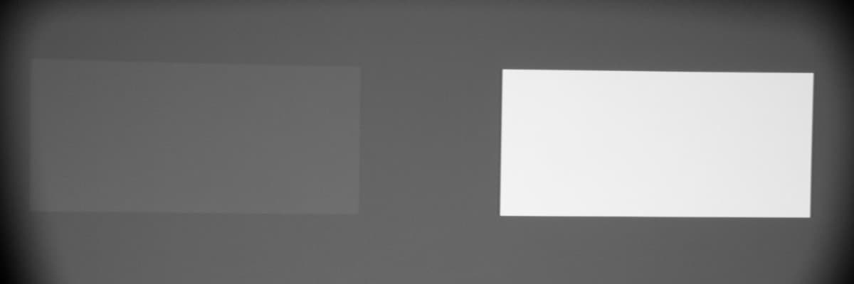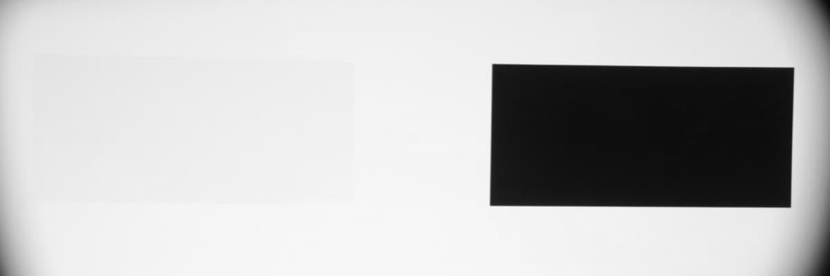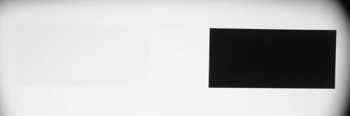 Максимальный световой поток практически равен паспортному значению (заявлено 2000 лм). Равномерность белого поля приемлемая. Контрастность очень высокая. Также мы измерили контрастность, измеряя освещенность в центре экрана для белого и черного поля, т. н. контрастность full on/full off.