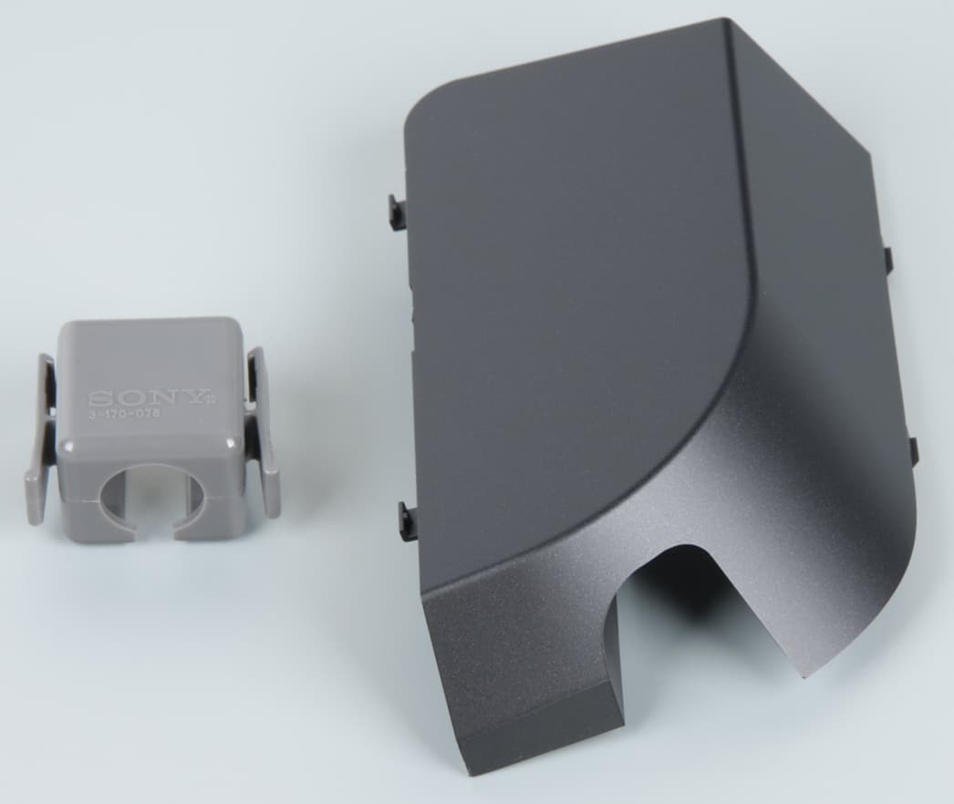 Выглядит передняя панель черной и непрозрачной. На самом деле она прозрачная, но для ИК-излучения, что позволило разработчикам скрытно разместить ИК-излучатели синхросигнала за панелью справа (если смотреть на экран) от объектива. Задняя панель частично с зеркально-гладкой и неустойчивой к появлению царапин поверхностью, но вентиляционная решетка, занимающая большую часть задней панели, матовая.