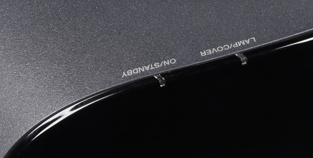 Проектор большой и тяжелый (порядка 20 кг). Впрочем, качество изображения и тишина работы отчасти соотносятся с габаритами — что больше и тяжелее, то, как правило, и лучше показывает, и тише (но и дороже). Дизайн корпуса строгий и симметричный относительно продольной плоскости. Цвет корпуса — черный. Верхняя панель, плавно переходящая в боковые поверхности, имеет очень необычное покрытие — матовое, крупнозернистое и с мелкими блестками, на ощупь оно напоминает крупную наждачную бумагу или шкуру акулы. Попытка использовать салфетку для очистки этой поверхности приводит к тому, что корпус покрывается трудноудаляемыми волокнами от растерзанной салфетки. Приходится использовать щетку. Фронтальная панель, напротив, изготовлена из пластика с зеркально-гладкой и неустойчивой к появлению царапин поверхностью.