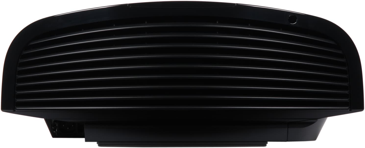 ИК-приемников два — спереди (за передней панелью) и сзади (круглое окошечко справа вверху). Проектор оснащен двумя передними вывинчивающимися из корпуса (примерно на 24 мм, стальные стойки М8) ножками, позволяющими устранить небольшой перекос и/или немного приподнять переднюю часть проектора при его размещении на горизонтальной поверхности. С противоположной стороны опорой при настольном размещении служит широкая резиновая ножка-брусок. Для крепления к потолочному кронштейну в днище проектора вделаны 3 металлические втулки с резьбой. Воздух для охлаждения внутренностей забирается через решетку вокруг объектива и через многочисленные решетки нижних плоскостях (но не на самом днище), а выдувается назад через решетку на задней панели. Отметим, что тип используемых матриц позволил создать герметичную оптическую систему и отказаться от использования воздушного фильтра.