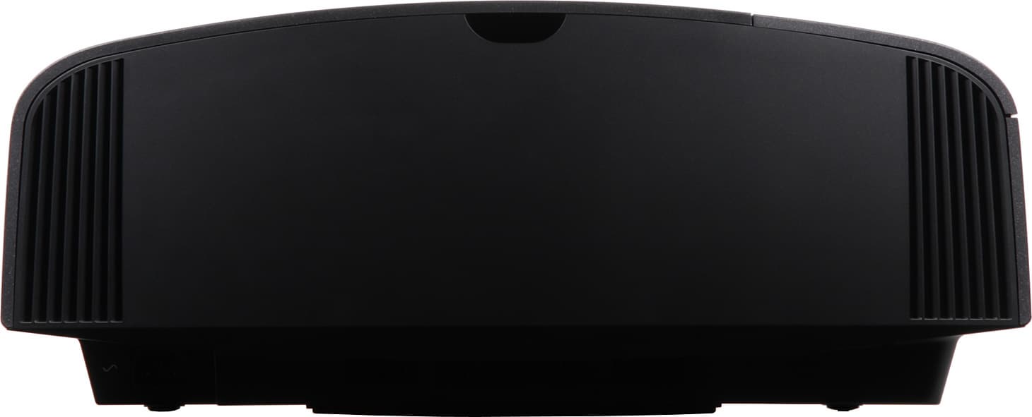 Внешне проектор на первый взгляд невозможно отличить от модели VPL-VW500ES, на второй, наверное тоже. Проектор относительно большой и тяжелый — те же 14 кг и габариты. Дизайн корпуса строгий и симметричный относительно продольной плоскости. Цвет — черный. Верхняя панель, плавно переходящая в боковые поверхности имеет очень необычное покрытие — матовое, крупнозернистое и с мелкими блестками, на ощупь оно напоминает наждачную бумагу. Пыль и следы от пальцев на таком покрытии заметны очень мало. Чистить его можно тряпкой, из которой не лезут волокна, или жесткой щеткой. Фронтальная панель, напротив, изготовлена из пластика с зеркально-гладкой и неустойчивой к появлению царапин поверхностью.