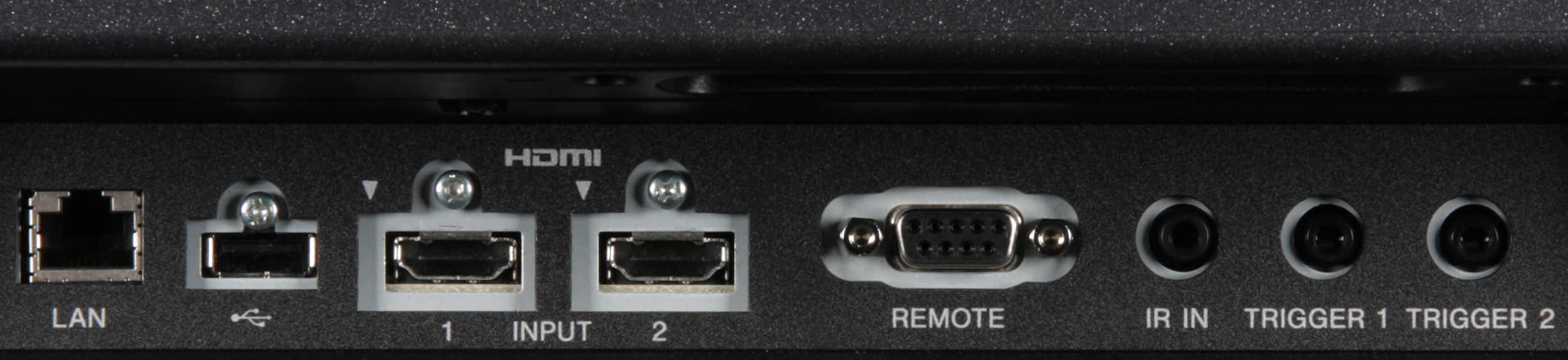 Видеовходов два — пара HDMI. При этом оба входа, разумеется, поддерживают HDCP, но только вход HDMI2 совместим с версией HDCP2.2. Переключение между источниками осуществляется перебором с помощью кнопки Input на корпусе проектора или на пульте. Экран с электромеханическим приводом и привод анаморфотного объектива-насадки можно подключать к выходам Trigger 1/2. Режим работы этих выходов устанавливается в меню. Третье гнездо миниджек предназначено для подключения внешнего ИК-приемника. Интерфейс RS-232C и проводной сетевой (разъем RJ45) предназначены для удаленного управления и контроля проектора. Отметим, что проектор оснащен встроенным радиочастотным синхронизатором для работы совместно затворными очками (радиус действия по паспорту составляет 10 м). Обновление встроенного ПО существенно упрощено, так как достаточно загрузить прошивку с сайта компании, подготовить USB-накопитель с записанным ПО, и подключить его к разъему USB на проекторе. Никаких уже редких кабелей и портов RS-232C и прямого подключения к компьютеру.
