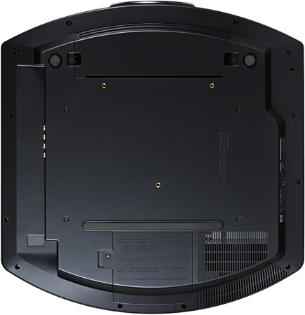 Крышки отсека лампы и воздушного фильтра находятся на днище, однако есть вероятность, что при использовании фирменного кронштейна проектор необязательно демонтировать с кронштейна для замены лампы и чистки/замены фильтра. Воздух для охлаждения внутренностей забирается через многочисленные решетки сзади и снизу и выдувается вперед и вбок через две симметричные решетки в передней части корпуса (в основном через правую).
