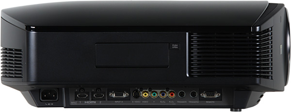 Набор видеовходов традиционен для данного класса проекторов — 4 аналоговых и парочка HDMI. Вход с разъемом mini D-sub 15 pin совместим как с компьютерными VGA-сигналами, так и с компонентными цветоразностными и GBR-видео. Переключение между источниками осуществляется перебором всех с помощью кнопки INPUT на корпусе проектора или на пульте. При этом если включена функция автопоиска, то проектор автоматически пропускает неактивные входы. Экран с электромеханическим приводом можно подключить к выходу TRIGGER1, а привод анаморфотного объектива, если кто на такой разорится, нужно подключать к выходу TRIGGER2. Заявлена поддержка управления по HDMI — проектор может автоматически включаться при включении (запуске на воспроизведение) подключенного по HDMI-оборудования, наоборот, выключать подключенное оборудование при выключении, также с пульта проектора можно управлять воспроизведением и т.д. Однако, подключенный Blu-ray-плеер Sony BDP-S300, хоть проектором и обнаруживался, но на команды никак не реагировал. Штатное предназначение интерфейса RS-232C — это загрузка пользовательских кривых гамма-коррекции с помощью программы ImageDirector3 (CD-ROM с ней входит в комплект поставки). К сожалению, имевшийся у нас COM-кабель не подошел, поэтому данную функцию мы не тестировали.