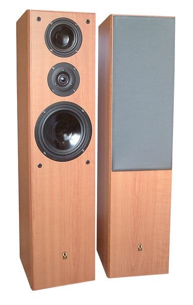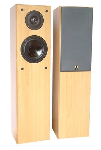 Сам диффузор сделан из лакированной для жёсткости бумаги, подвес выполнен из мягкой резины. Ход подвеса динамика достаточно глубокий, но ровный (без осевого люфта). ВЧ-динамик (твитер) несколько необычен. Здесь он выполнен не из шелка, а из прозрачного пластика. Подключение фронтальных колонок осуществляется с помощью резьбовых зажимов. Сетки выполнены в виде рамки с натянутой на неё акустической тканью.
