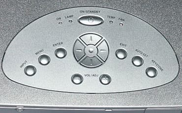 Удивительно, но выключателя питания нет. Будучи включенным в сеть проектор всегда находится в спящем режиме, готовый включиться по команде, тихонько вращая вентиляторами на самой малой скорости. Поэтому, выключая проектор надолго, шнур питания лучше выдернуть.